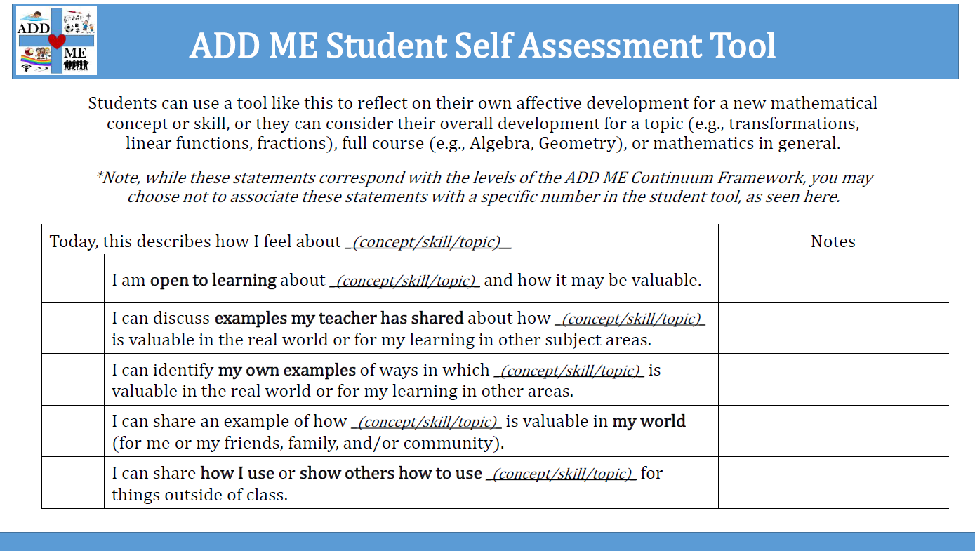 ADD ME Student Self-Assessment Tool